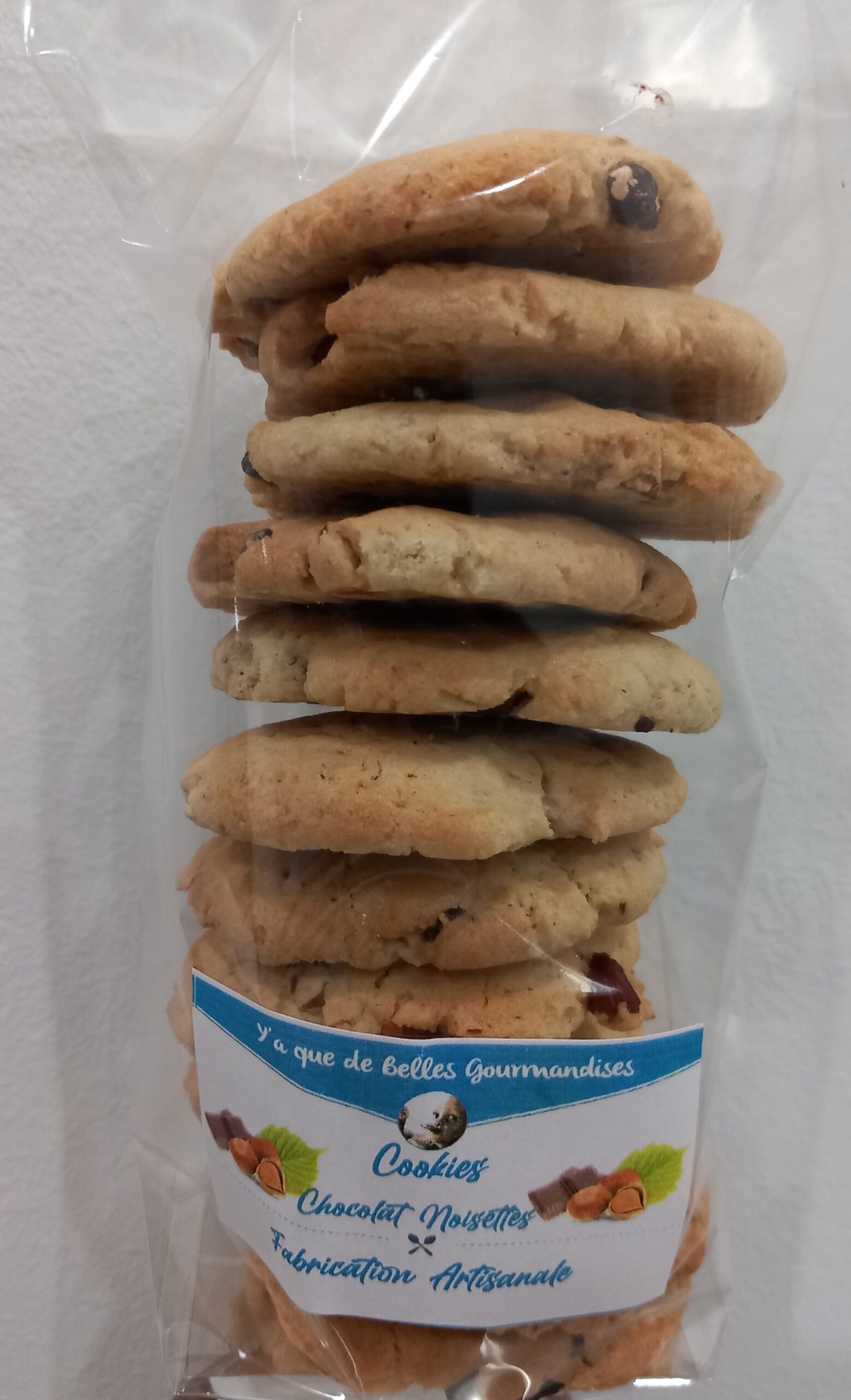 Ingrédients Naturels : Farine de blé, beurre, Sucre , œufs, pépites de chocolat, noisettes, levure et sel